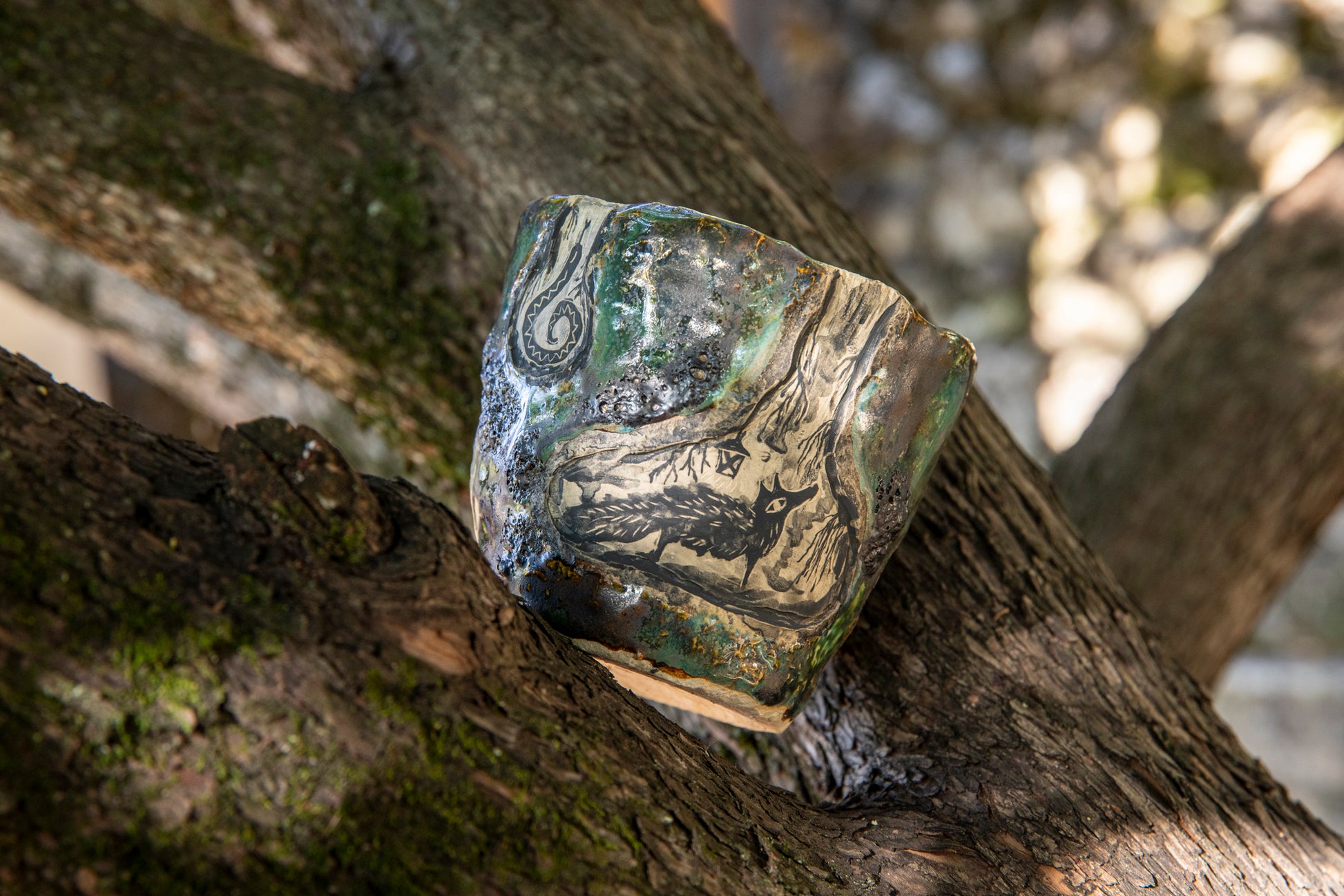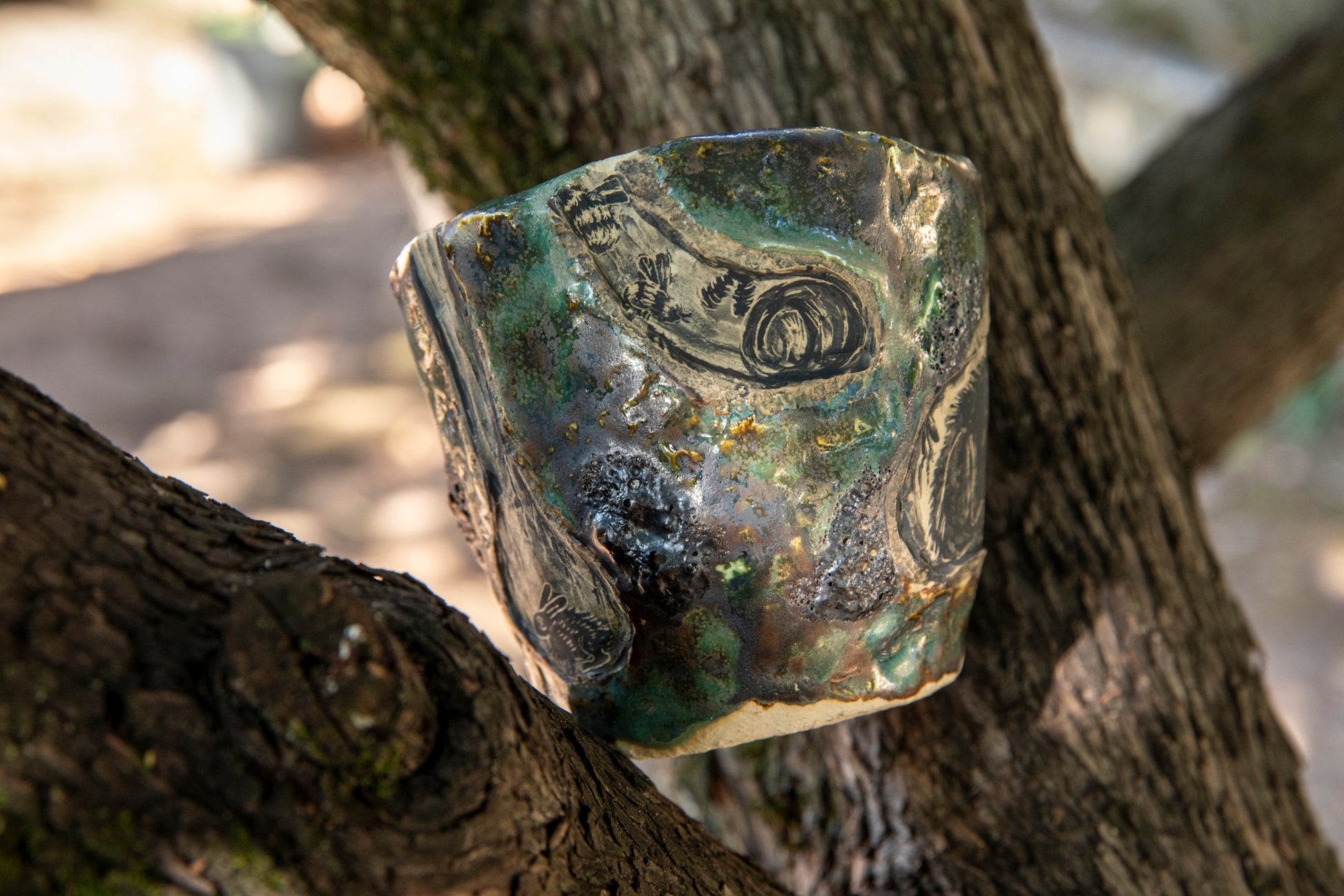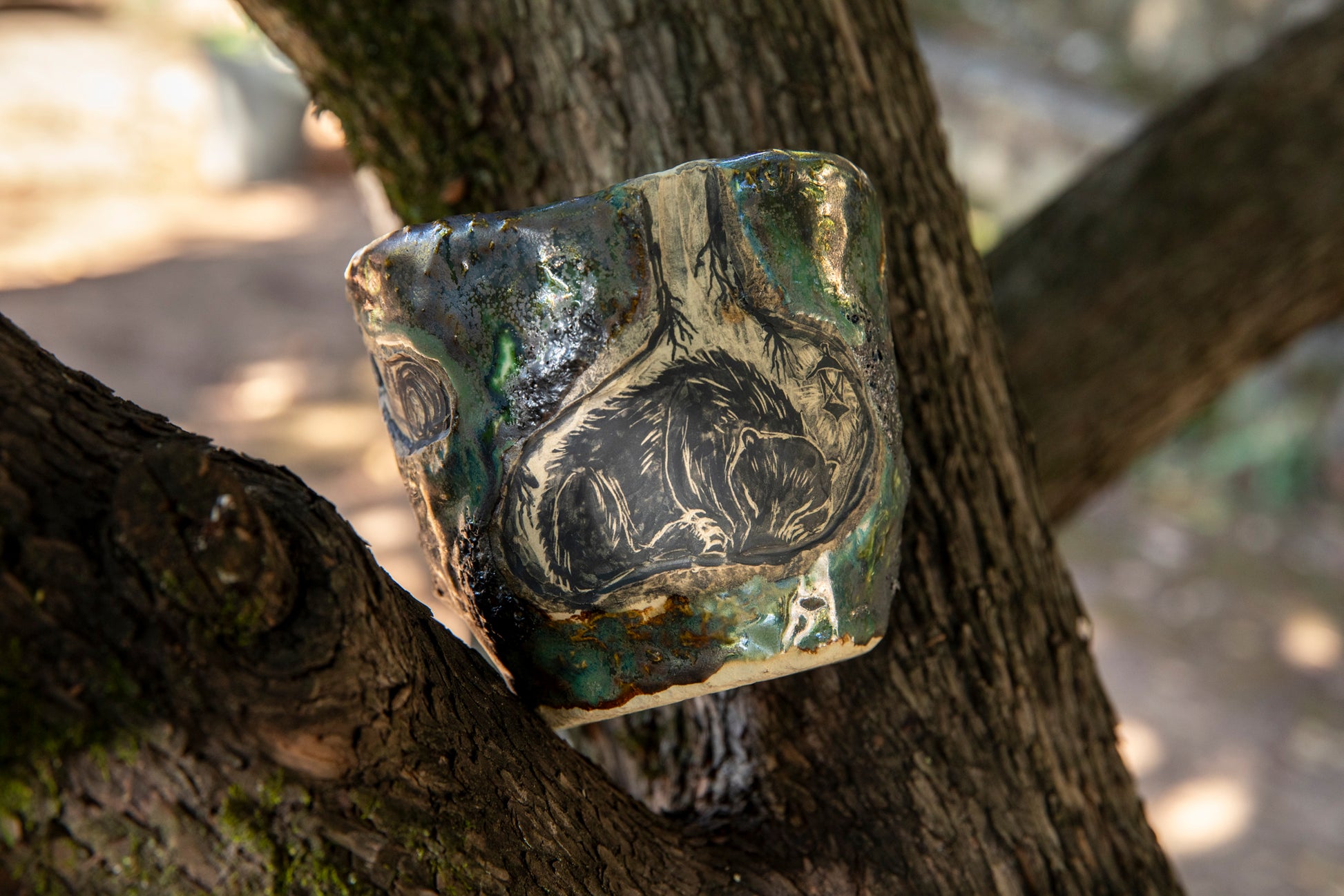 Beautiful ceramic flower planter with bear, fox, bumblebees, snake, hare, one of a kind. Cup.