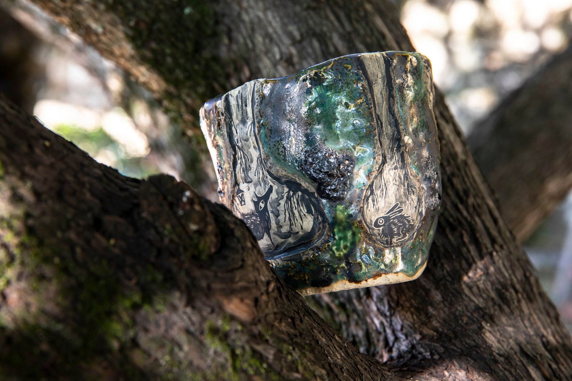 I had an idea to create a little underground world here, with a fox, bunny, bear, bumble bee family. A heavy chunky piece, made to last.