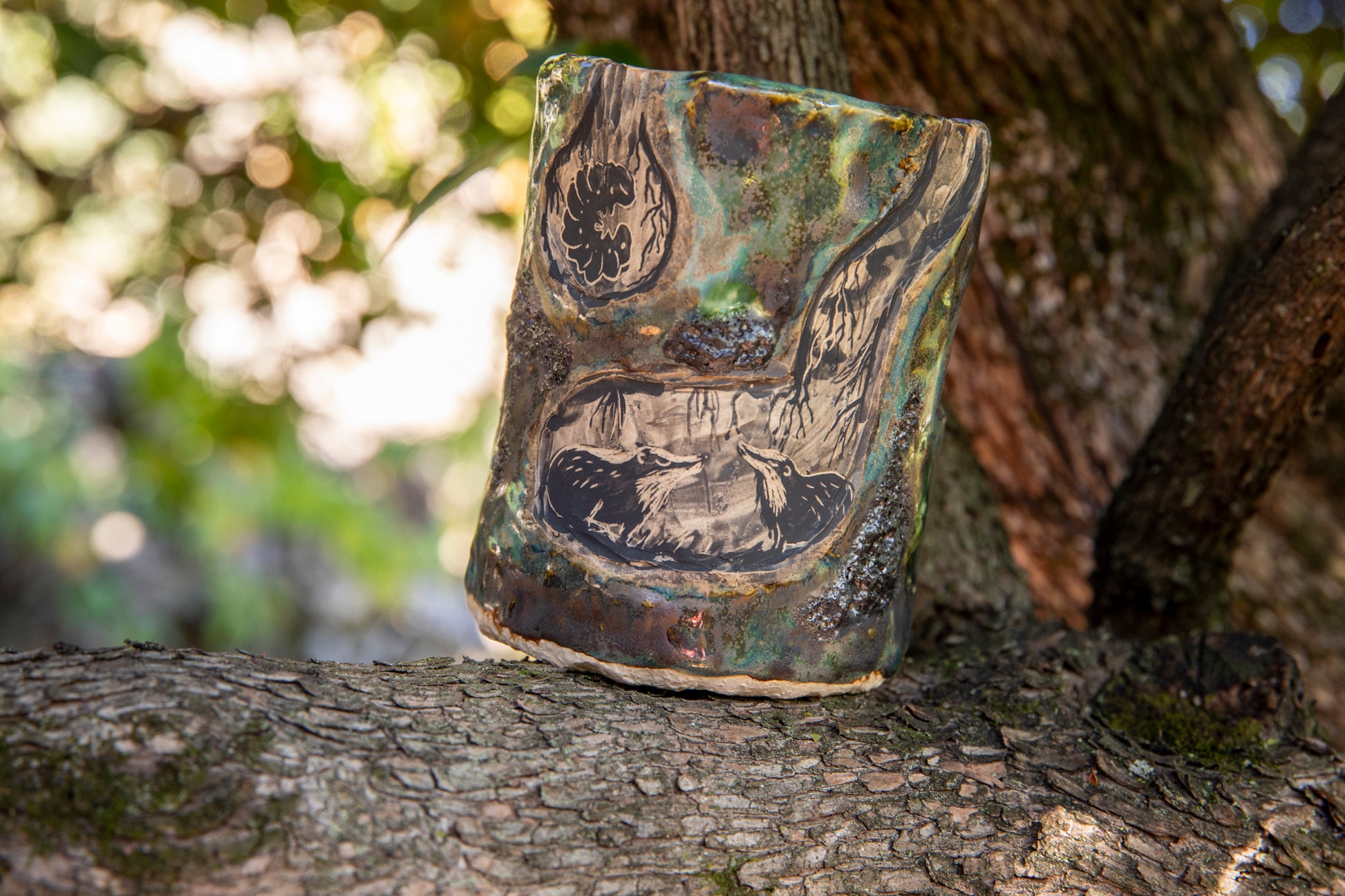 I had an idea to create a little underground world here, with a wolf, bunny, badgers, caterpillar. Rough, earthy, made to last.