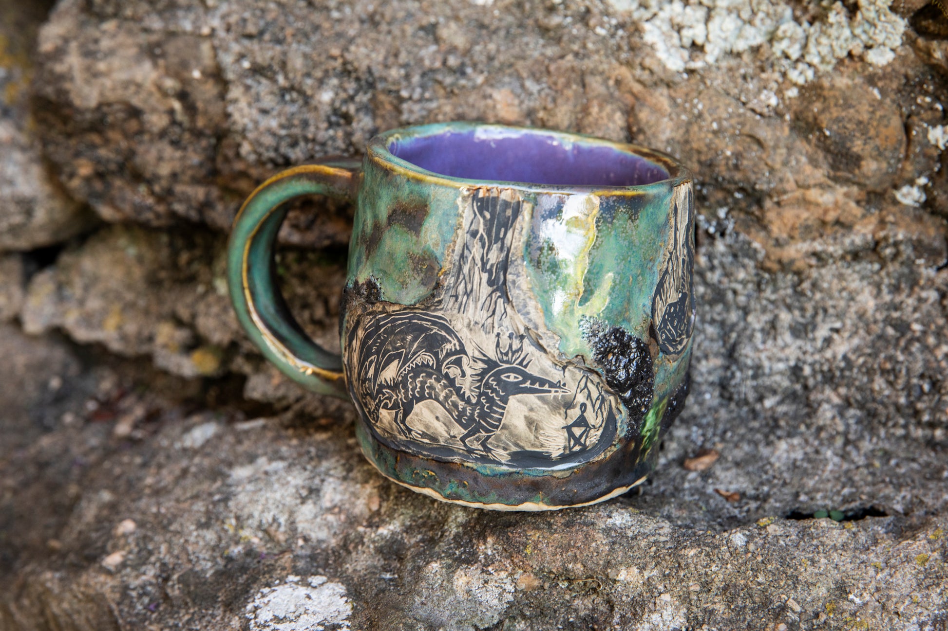 Dragon and Frog the Wizard magic ceramic mug, one of a kind, unique and handmade